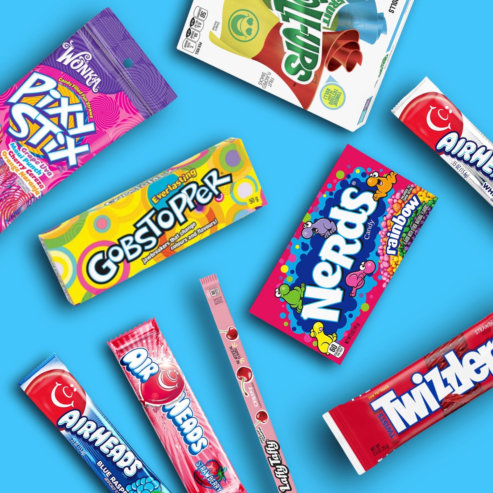 Air Heads Cherry Air Heads White Mystery Jelly Belly Beans Very Cherry Bubblicious Bubble Gum Watermelon Laffy Taffy Cherry Mike & Ike Original Fruits Small Mike & Ike Sour Watermelon Small Now And Later The Long Lasting Chew Strawberry Kiwi Reese's Nutrageous Bar Warheads Sour Jelly Beans Wonka Gobstopper Small Pop Rocks Popping Candy Tropical Punch Mike & Ike Jolly Joes Small Jelly Belly Beans Harry Potter Bertie Bott's Sachet Now And Later Chewy Pink Lemonade Air Heads Bites Original Fruit Jelly Belly Gum Very Cherry Sugar Free Gum Funlab Candy Lipgloss